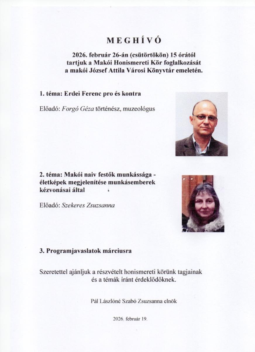 A Makói Honismereti Kör tagjai várnak miden érdeklődőt programjukra Kategória: Tagjaink által szervezett programokMakó – Kiszombor térsége